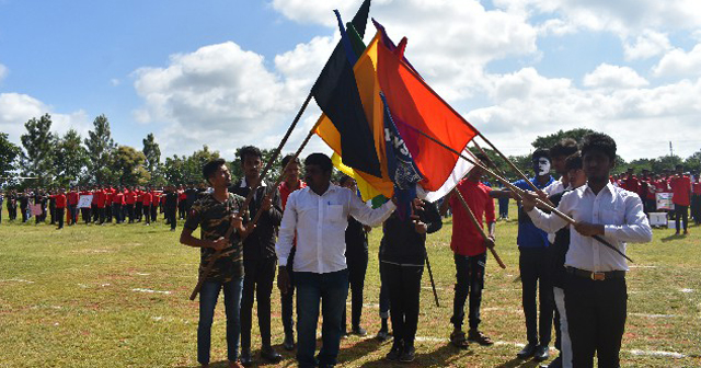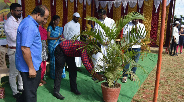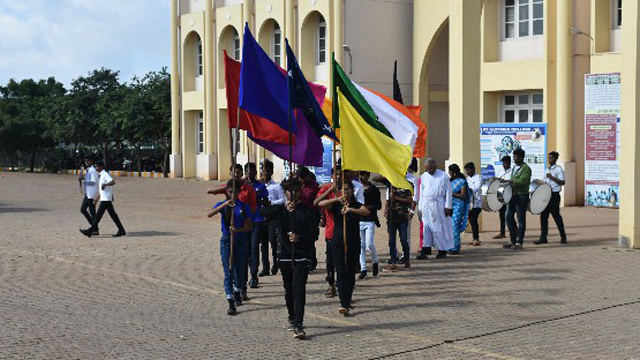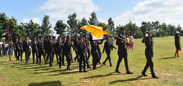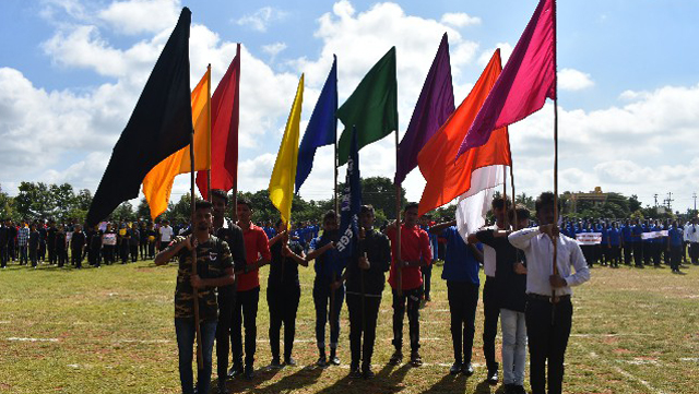 The students entered into the spirit of the occasion in a grand and captivating march past. Each class came up with a different theme and they conquered the ground. The chief guests took the salute from the students. A formal inauguration began with hoisting the college flag followed by singing the college anthem. Master of the ceremony, Pavithra called upon the president of St Aloysius College to deliver the welcome speech. The programme was inaugurated by watering a plant. The chief guest for the day, Thomas, addressed the students and motivated them by narrating his own experience. Being a victim of polio, he has inspired many with his bravery by winning gold medal in national level weightlifting. He said that if he can achieve this, they can achieve much more than this.