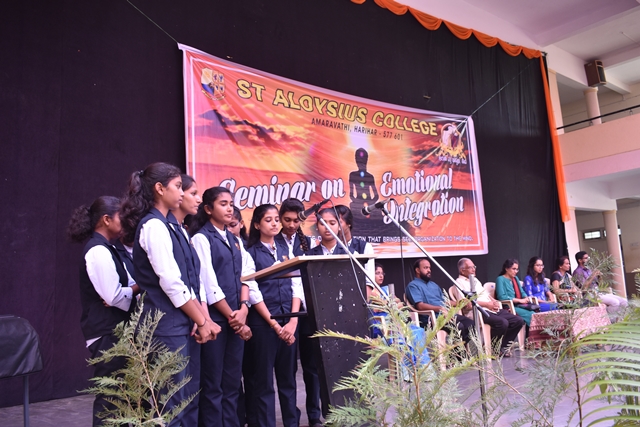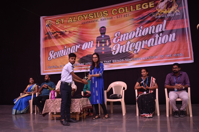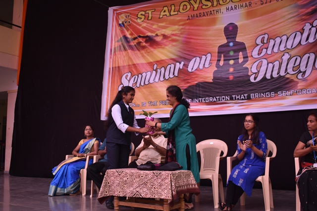 St Aloysius College,Harihar organized a talk for it students on Emotional Intergration on 9 September 2019 in the college auditorium.The speaker for the day was Dr Shalini Aiyappa,Psychologist and Head of the Department of Psychology,St Aloysius College Mangalore accompanied by Ms Sharon Dsouza,Counsellor ,St Aloysius College ,Mangalore