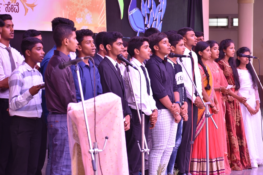 The mass was followed by cultural programme which was held for the students, parents, teaching and non-teaching staffs. The master of the ceremony was conducted by Miss Sangeetha of first year PUC-Arts and Miss Revathi of second year PUC- Commerce.
