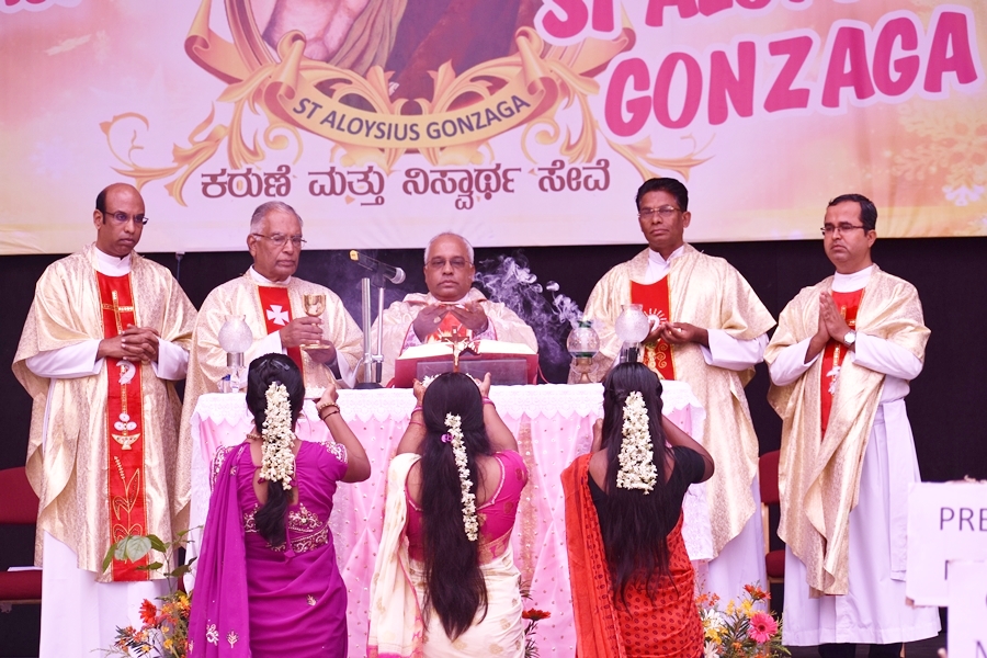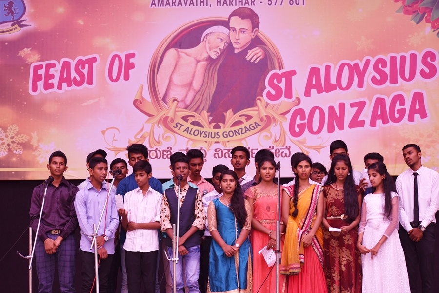 St Aloysius College, Harihar celebrated the 450th Birth Anniversary of St. Aloysius Gonzaga, the Patron Saint of the college, on 21-06-2019.