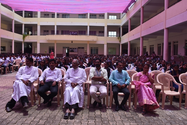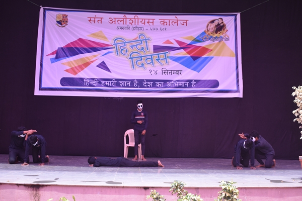 Dancing is the most basic and relevant of all forms of expression. Students of first PUC came up with an iconic Bollywood dance performance which was followed by another mind-blowing performance by first PCMB students. Students of Science performed a lovely skit which was followed by another dance performance. Mime makes the invisible, visible and the visible, invisible. Students fascinated the audience through their Mime performance. Master of ceremony Rubeena then called upon students of second PUC commerce to perform a dance. Fr Pradeep Sequeira fetched a wide smile on the faces of the students by his speech. He began his speech by saying his love for the Hindi Language. He spoke about his personal experiences. He is a lover of Hindi and up to his college he has taken Hindi as his second language but after his college days he didn’t get the opportunity to speak in Hindi and he is immensely happy to deliver a speech on this auspicious occasion. He concluded the speech by saying that he loves Hindi Language for its cadence and simplicity. The program came to an end at 1pm.