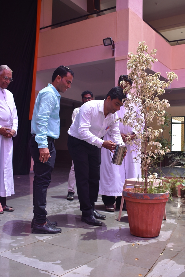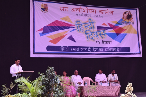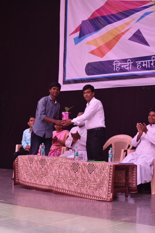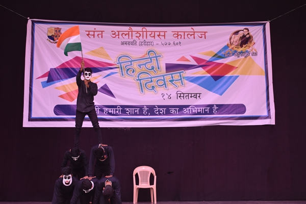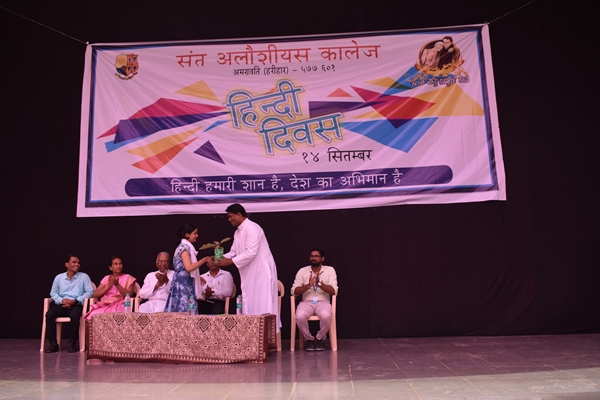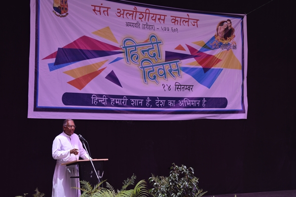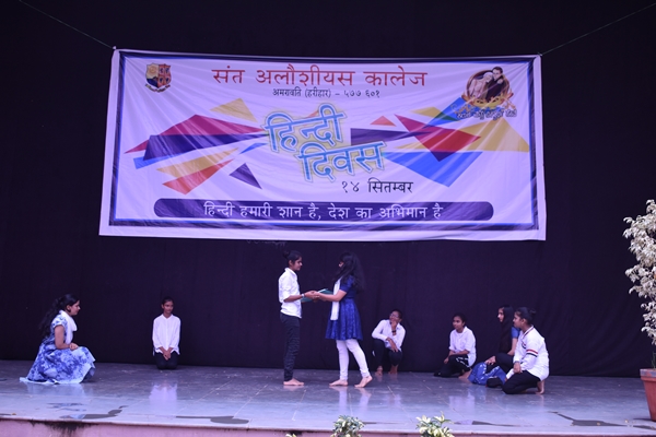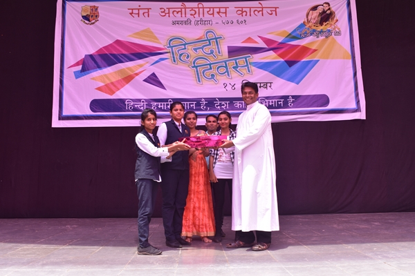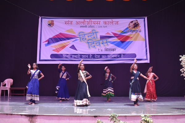 St Aloysius College Harihar celebrated Hindi Divas on 14 th of September. The aspiration of the program is to make the students understand about the significance of Hindi Language. Program began at 11am by welcoming the guests to the stage. The chief guest of the day was Mr. Syed Idrus Hindi Lecturer of Giriyamma college Harihar. Students welcomed him along with other guest’s Fr Eric Mathias SJ principal and superior of St Aloysius college, Fr Pradeep Sequeira Finance officer, Mr. Sunny Gudhino and Mrs Pushpalatha vice principal and Mr. Vasanth Rathod Coordinator of the program. In a society that worships Love, Freedom and beauty, dance is Sacred. It is a prayer for the future a remembrance of the past and a joyful exclamation of thanks for the present. The program began with a prayer dance by first PU students which was followed by the inauguration by watering the plant. Master of the ceremony Ms Rubheena Sultana invited the chief guest Mr Syed Idrus to address the audience. He began his speech by a conspicuous Shayari then he thanked his friend Mr Vasanth Rathod for inviting him for this program and he also added that even though he thought of celebrating Hindi Divas for the past several years he couldn’t do and he is extremely happy that his friend has made his dream into reality. He spoke about the importance of Hindi language. Even though it is our Rashtra Bhasha the language is not given much importance. He also spoke about two Eminent personalities; Swami Dayananda and Mahatma Gandhi even though they were Guajarati’s by origin they try to propagate Hindi throughout the country.
