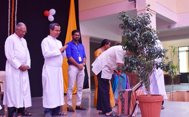 The programme was inaugurated by watering the sapling and cake cutting. Grace Vargeese lecturer of St Aloysius College along with the students enchanted the audience with an Ignatian song.