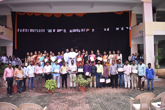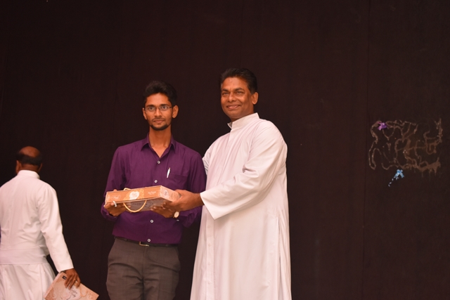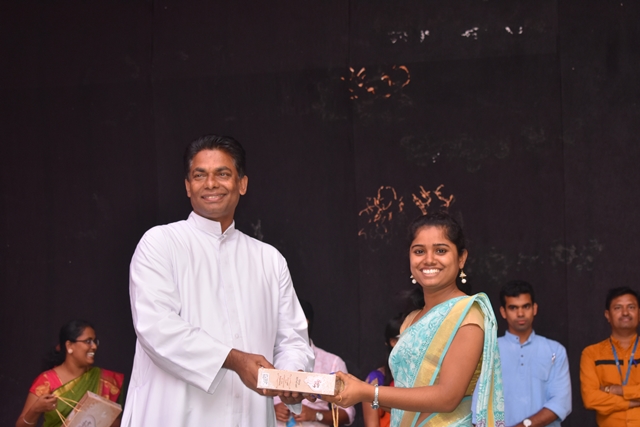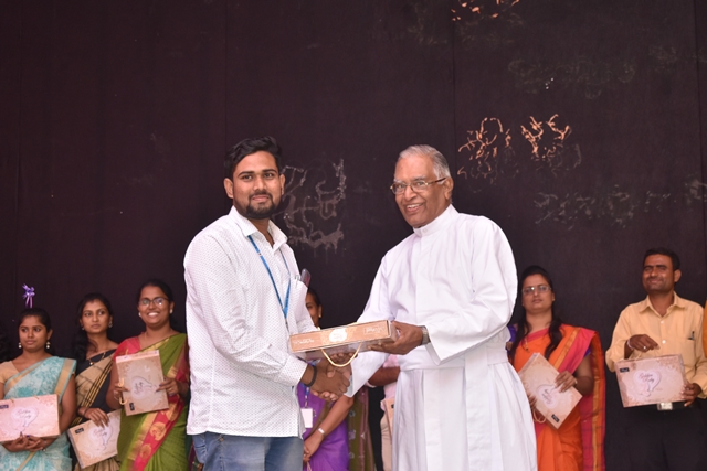 Students of 1st PUC commerce came up with a beautiful skit dance which brought a wide smile on the faces of all staffs. Next was an energetic dance performance by the students of 1st PUC. Students of third B.Com came up with the next task for the lady staffs. The game session was followed by distributing the mementos to all the staffs. Father Eric Mathias SJ Principal and superior of Degree college and Father Pradeep Sequeira finance officer of St Aloysius College distributed the mementos. Dance isn’t dance it is magic; students of PUC enchanted the audience with their beautiful performance. With this Tejaswini concluded the programme by thanking all the staffs from the bottom of her heart.