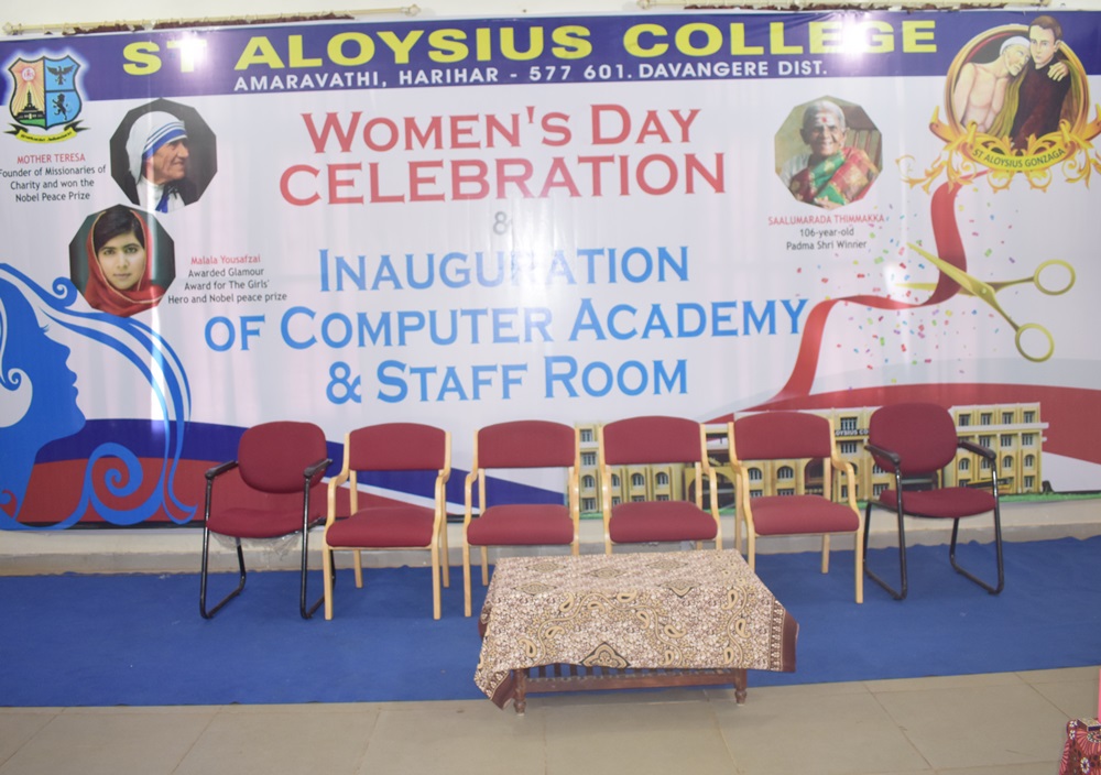 Women’s Day celebration was followed by the Inauguration Ceremony of Computer Academy and Staff Room. It was an honour to have Rev. Bishop Francis Serrao S.J, Fr. Maxim Rasquinha S.J, Sri Sri Veerendramahaswamiji, Smt. Lakshmi S. (Municipality Commissioner), Smt. Sujatha Revana Siddappa ( President of City Council), Smt. Sridevi Manjappa (President of Taluk Panchayat), Smt. R.L. Veena and Smt. Sujatha ( Principal of Giriamma PU College) for the occasion.