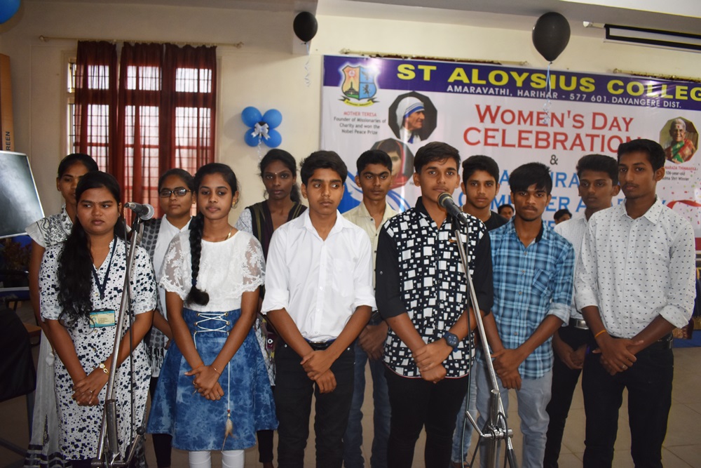 19th March 2019 saw a magnificent Women’s Day Celebration in the college auditorium of St. Aloysius College, Harihar. The programme sought to celebrate the lives of Municipality workers, Asha workers, women living in the vicinity of the college and mothers of the students who despite of their immense contribution are less recognised by the society they endeavour for.